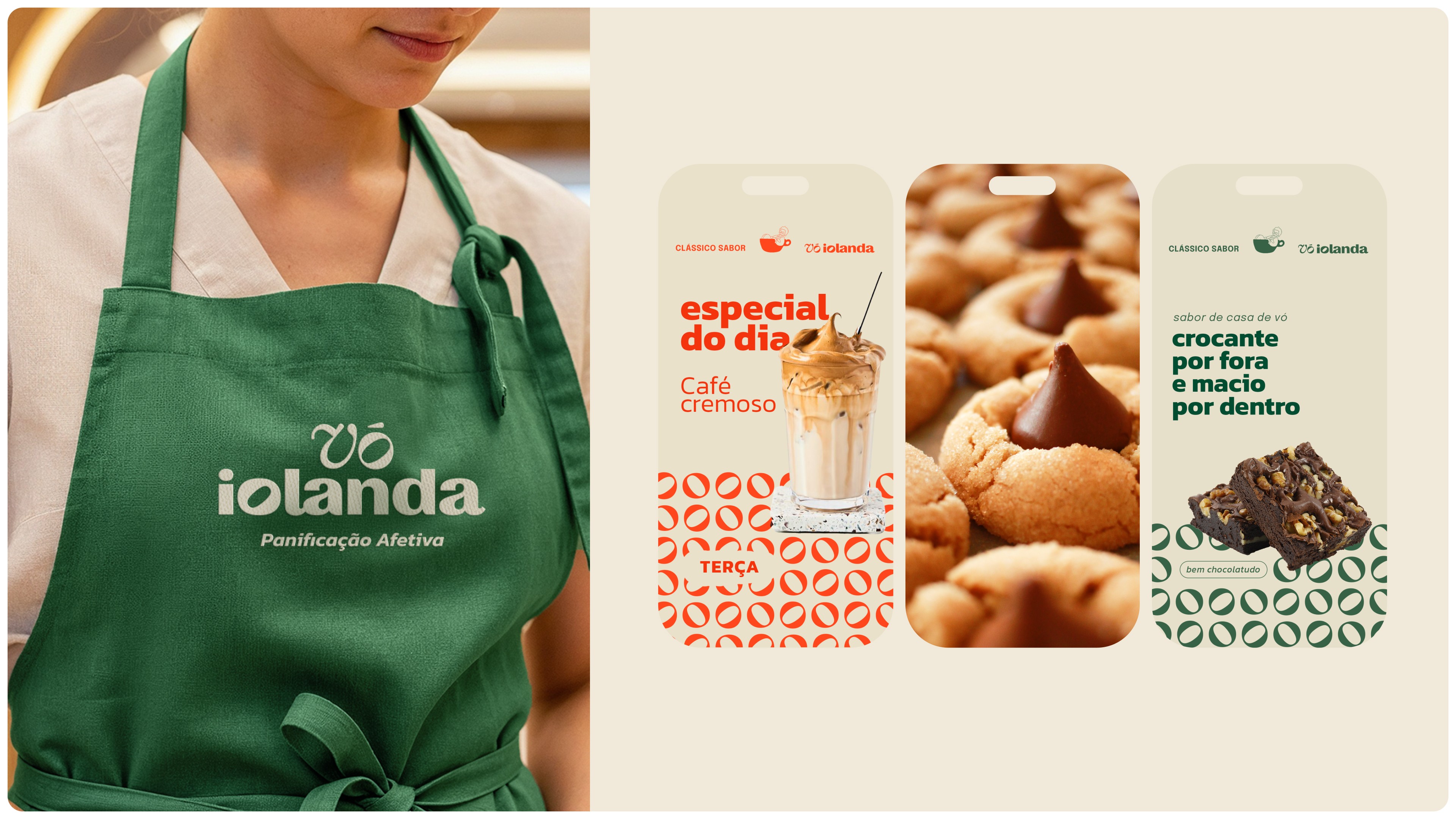 A Vó Iolanda nasceu do desejo de transformar a tradição da panificação artesanal em um negócio com impacto social. Mais do que vender pães, a marca precisava transmitir acolhimento, afeto e um propósito maior: reinserir pessoas no mercado de trabalho e criar um espaço de acolhimento e oportunidades. O desafio era construir uma identidade visual que unisse tradição e inovação, mantendo a essência de uma panificadora familiar, mas com estrutura e força para crescer.